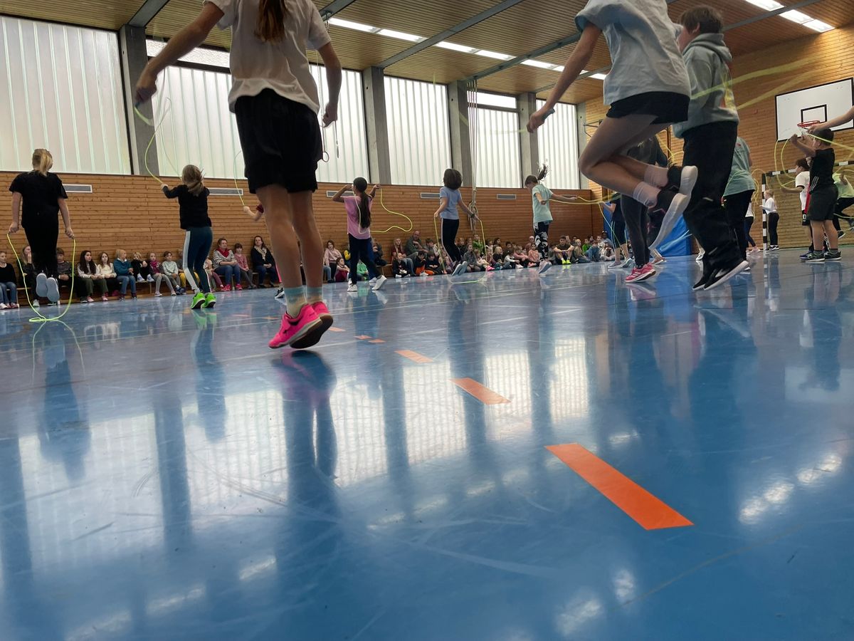 Projekt: Skipping Hearts Herz-Vorsorge, die Schulkindern Spaß macht - die 4. Kasslerinnen und Klässler der Sommerberg-Schule durften vergangene Woche am Seilspring-Projekt der Deutschen Herzstiftung "Skipping Hearts" teilnehmen. Laufen, Springen, Ballspielen – was eigentlich dem natürlichen Bewegungsdrang von Kindern entspricht, gehört nicht mehr selbstverständlich zu deren Tagesablauf. So spielen viele Kinder am Computer oder schauen fern. Eine Folge davon: Weltweit ist bereits mehr als jedes fünfte Schulkind übergewichtig. Um Kinder wieder zu mehr Bewegung zu motivieren, hat die Deutsche Herzstiftung das Präventionsprojekt „Skipping Hearts“ initiiert. Denn wer bereits von Kind an einen gesunden Lebensstil (Bewegung, gesunde Ernährung) pflegt, verringert das Risiko im Alter am Herzen zu erkranken. Mit voller Begeisterung zeigten die Kinder bei der abschließenden Vorführung vor der gesamten Schule, was sie im Workshop gelernt haben: Einzelsprünge wie Basic-Jump, Jogger oder Criss-Cross und Partnersprünge. Mit der Möglichkeit nach dem Workshop ein professionelles Springseil zu erwerben, wirkt das Gelernte noch weit über den Workshop hinaus. Auch im Sportunterricht werden die Elemente von Skipping Hearts immer wieder aufgegriffen. Wir bedanken uns bei der Deutschen Herzstiftung für den tollen Workshop und hoffen, dass die Sommerberg-Schule auch im nächsten Jahr dabei sein kann. | |