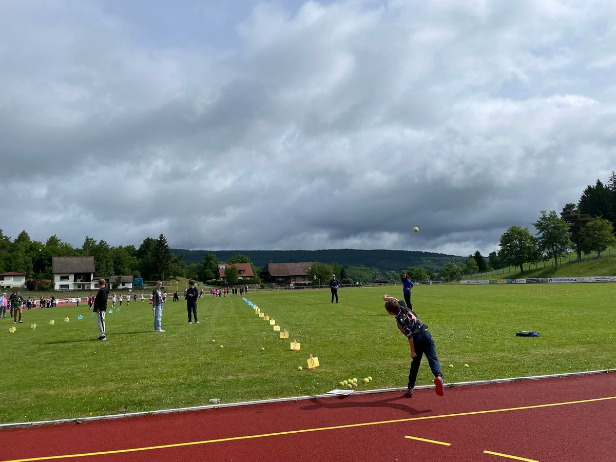 Bei besten Bedingungen fanden die diesjährigen Bundesjugendspiele am 03.06. im Stadion an der Schliecht statt. Nach dem gemeinsamen Aufwärmen starteten die Klassen bei den einzelnen Disziplinen. Nachdem alle Kinder sich im Weitsprung, beim Weitwurf und im Sprinten unter Beweis stellen konnten, stand der Ausdauerlauf auf dem Programm. Über die Bahn, über diese Wiese, bergauf und bergab und dabei lautstark angefeuert zeigten die Kinder zum Schluss erneut ihre Sportlichkeit. Ein besonderer Tag gilt allen Elternhelfern, die uns an diesem Tag unterstützt haben.
