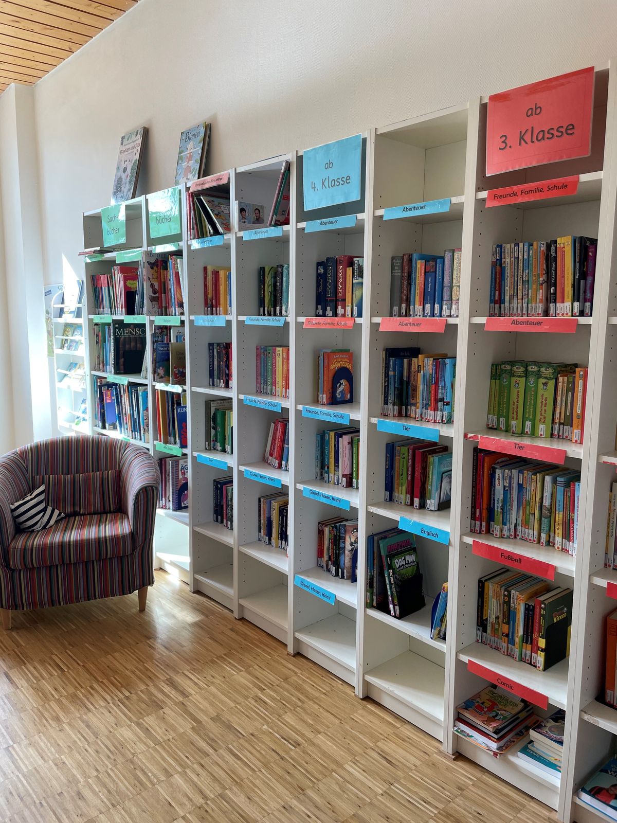 Schulbücherei Zweimal pro Woche können die Kinder und alle aus dem Sommerberg-Team in den gut gefüllten Regalen nach der passenden Vorlese-Lektüre, dem neusten Sachbuch oder der nächsten spannenden Buchreihe stöbern. Hier ist für jeden etwas dabei! Die gemütlichen Leseecken laden zum Verweilen ein. In diesem Schuljahr hat die Bücherei folgende Öffnungszeiten: